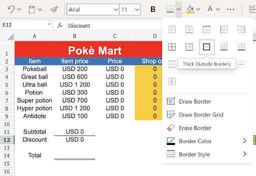 E12:F12 - Add Thick outside borders