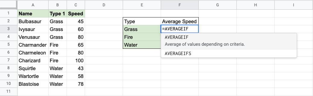 Google Sheets AVERAGEIF Function