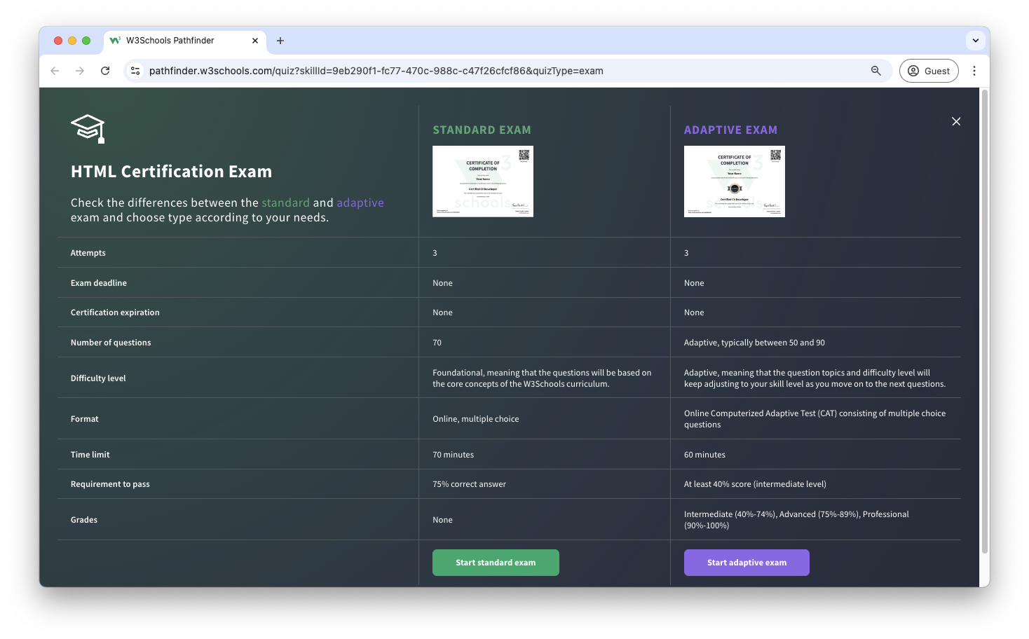 W3Schools offers an end-of-pathway certification program.