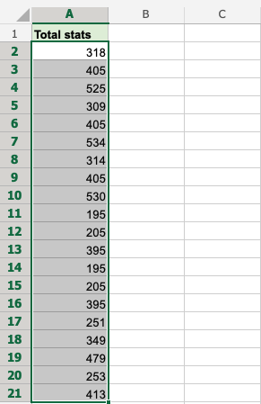 Note: A1 is not included as it is the header for the column. This is the row that is dedicated to the filter. Including it will blend it with the rest.