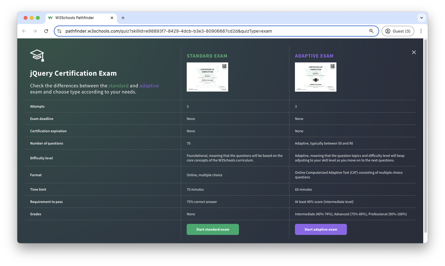 W3Schools offers an end-of-pathway certification program.